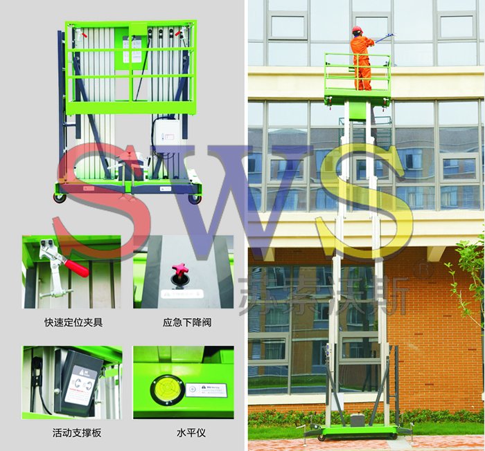 升降桅柱全部用用高強度鋁合金型材,整機重量輕,移動十分方便。